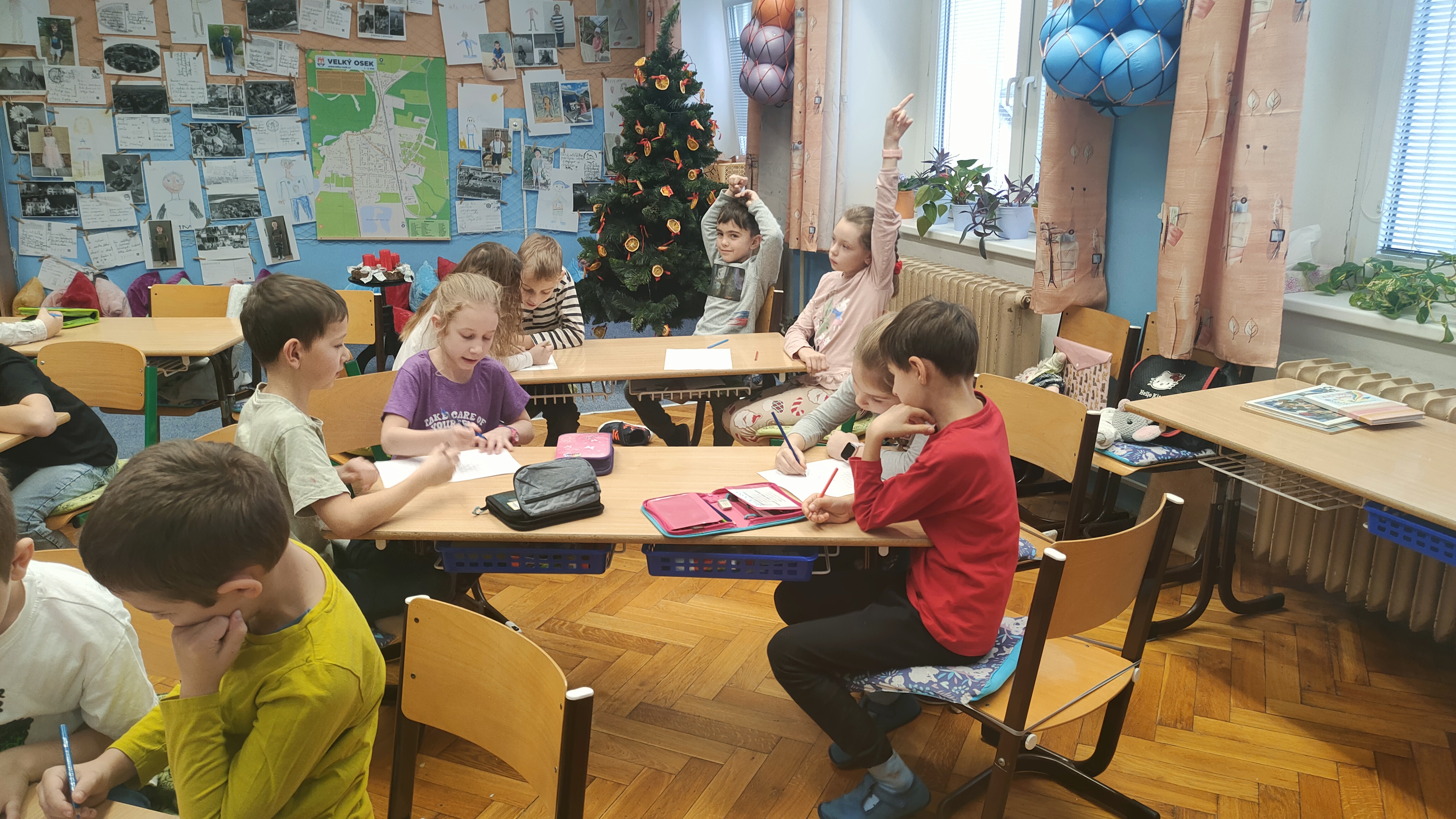 Při cestě na tramvaj jsme prošli přes vyšehradský hřbitov. Víme, že je tam pochovaná spisovatelka Božena Němcová nebo třeba hudební skladatelé Bedřich Smetana a Antonín Dvořák. Při zpáteční cestě vlakem jsme si zopakovali slova básničky o muzeu a potom jsme si užívali volného času povídáním se svými kamarády.